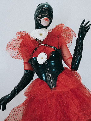 She explains: “The Dress Up collection is a series of self-portraits where I’m not only wearing latex but also fabric clothing like pink silks, floral prints and other materials that carry a traditional sense of femininity.