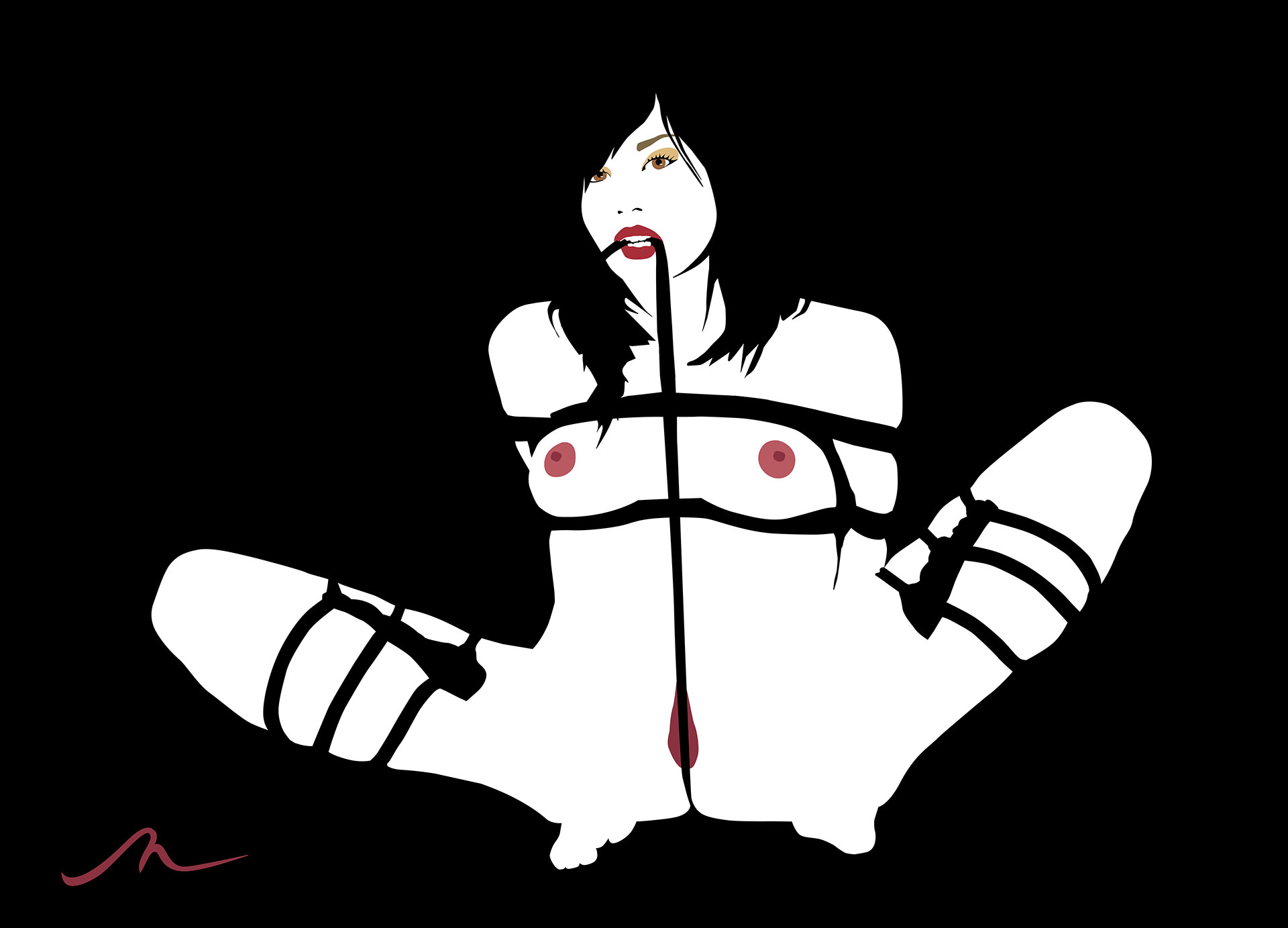 Known for her signature technique — layering cut sheet latex to create striking, pop-art inspired portraits — Michelle’s work draws influence from a broad range of sexual fetishes including rubber fetishism, BDSM and sexual objectification.