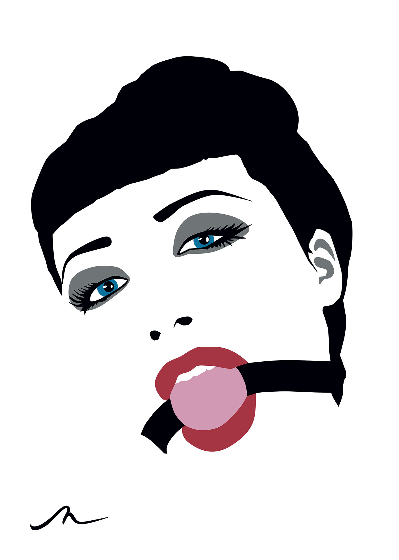 With a graphic pop art edge, her portraits transform familiar and iconic faces, as well as original characters into figures of empowerment, intrigue and humour.