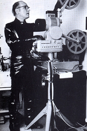 Prominent among fetish veterans at the opening night was AtomAge’s founder John Sutcliffe (below), the evening’s guest of honour who had loaned a copy of his Under Three Layers latex film for screening there.