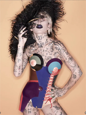 BROOKE CANDY in Richard Lindner-inspired WM Abstract Corsage (2023) (photo: Carlos Victimo)