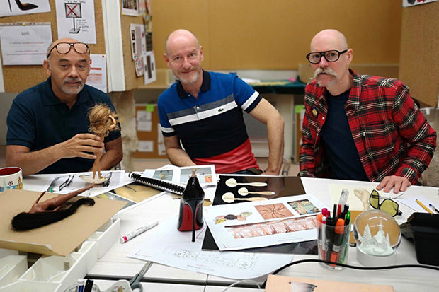 BELOW: Shoe designer Christian Louboutin in the studio with Patrick Whitaker and Keir Malem (2018)